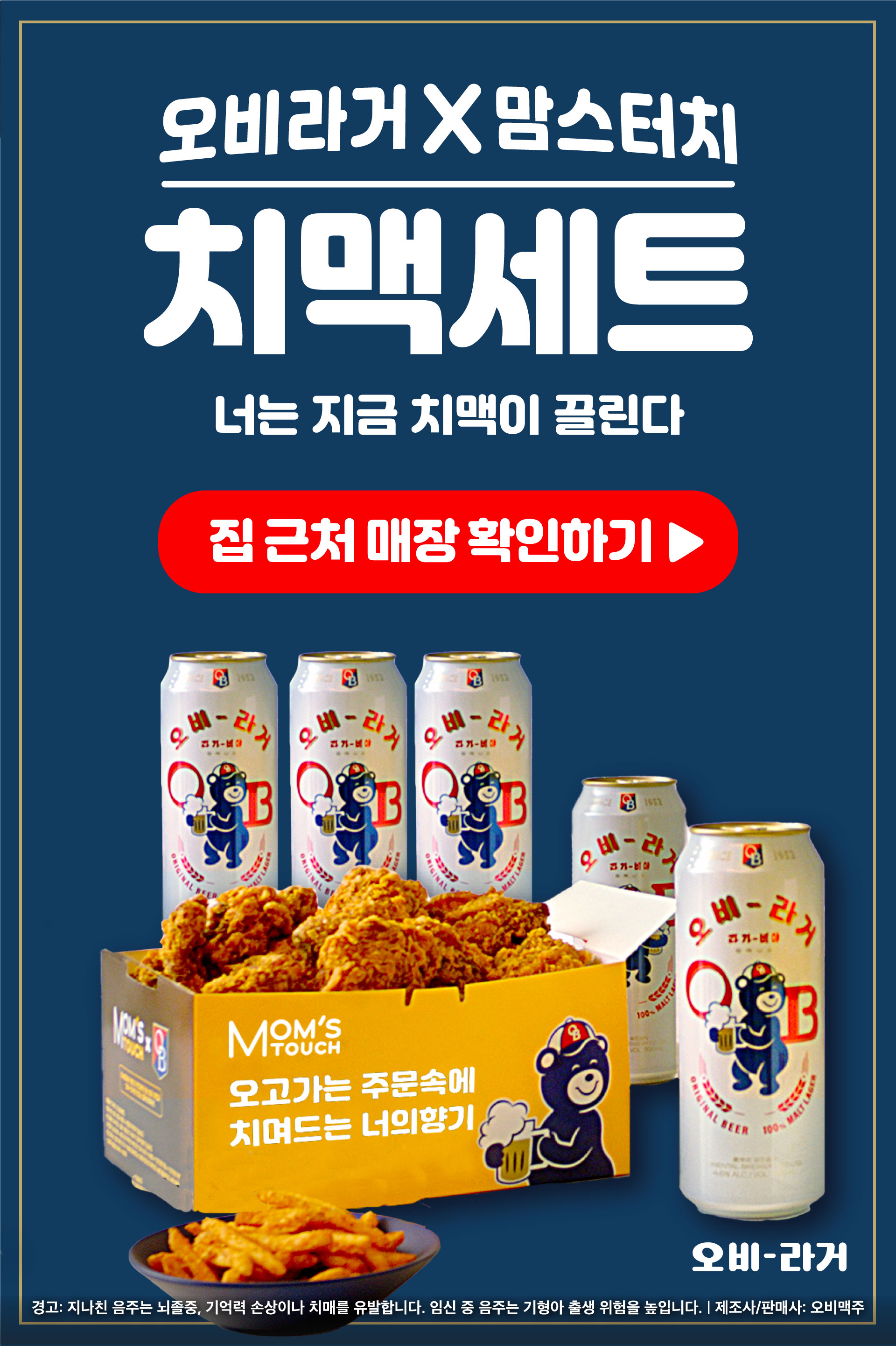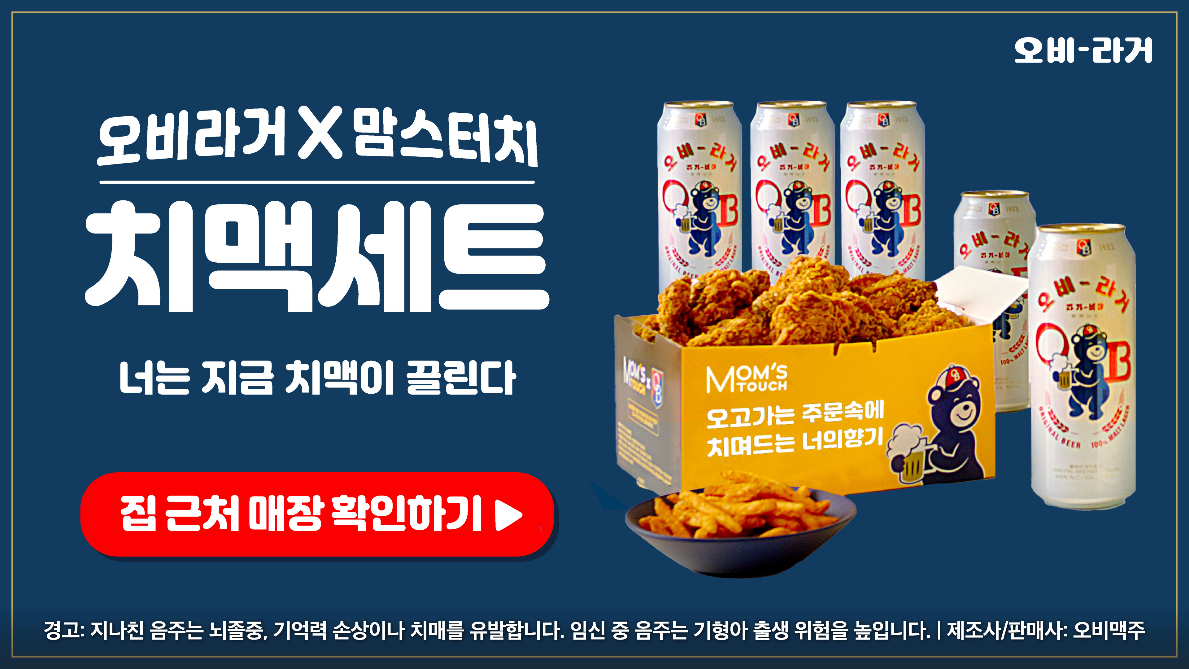 OB Larger collaborated with a chicken brand called Mom's Touch. I designed online banners for their advertising campaign. Used Adobe Photoshop to correct the provided photos. The main title translates to “Obilager x Mom's Touch, chicken and beer set” and was produced in Adobe Illustrator.