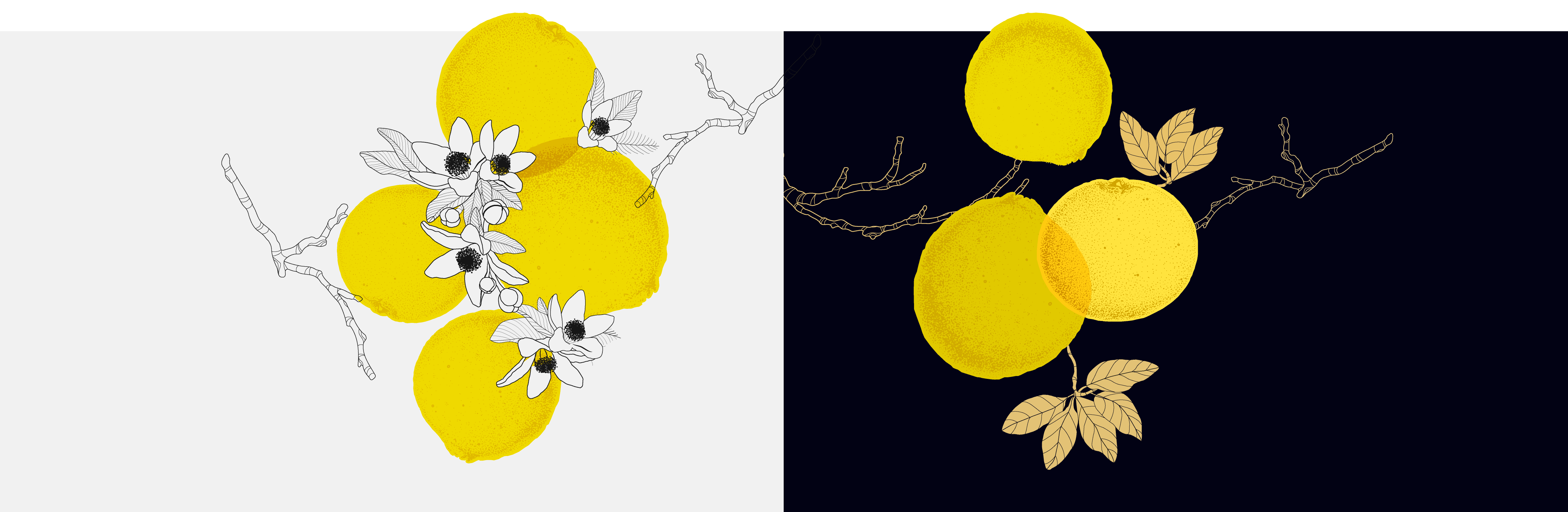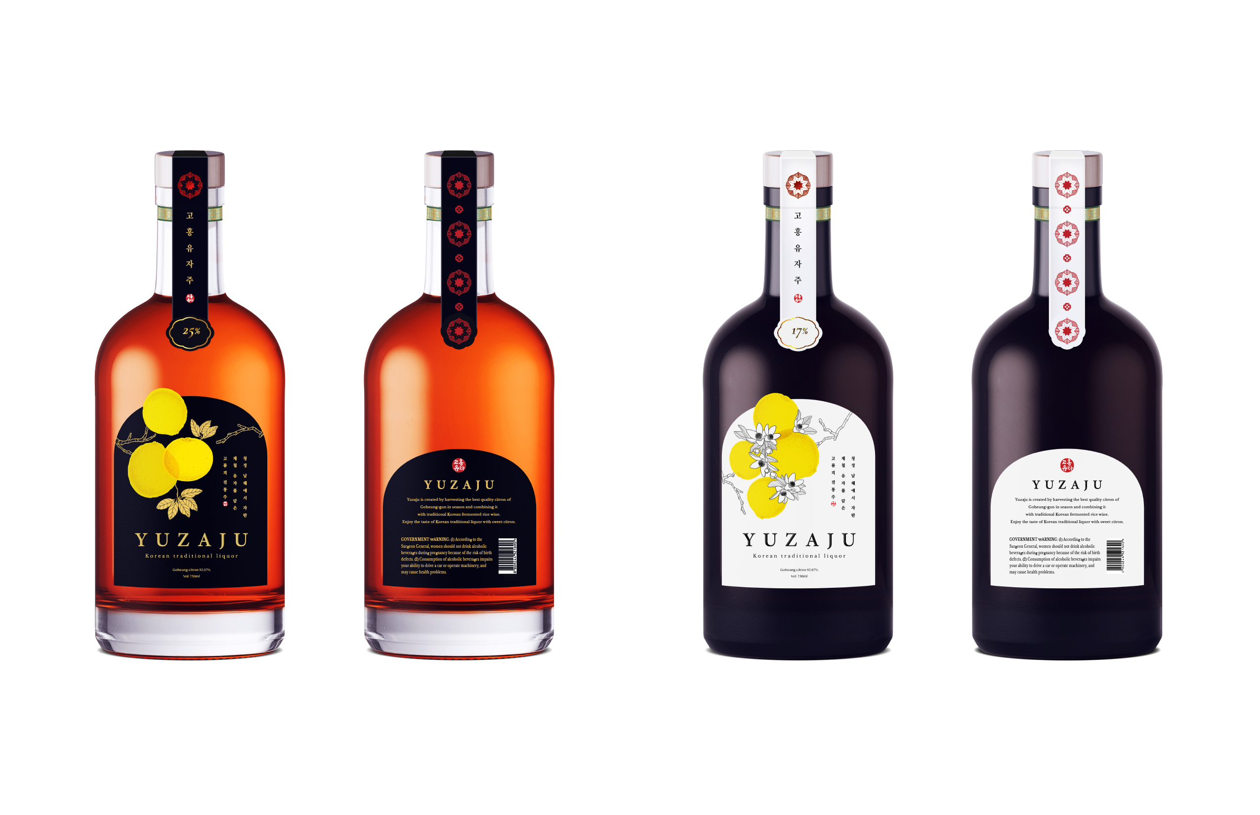 The colors represent a luxurious and traditional mood as accents while using black and white. It includes its yellow golden color to represent citron flavor for illustration. Serif fonts were used for both Korean and English typography.